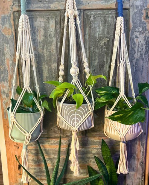 Throughout the workshop, Rachel will teach you essential macramé knots and techniques in a relaxed, supportive setting, making it easy to follow along and build your skills. Once you’ve mastered the basics, you’ll have the foundation to continue exploring and creating your own future macramé pieces. For those that do not finish their hangers during the workshop, pattern handouts and instructions will be provided for you to bring home and finalize your creation!