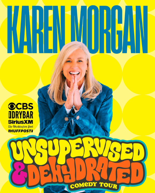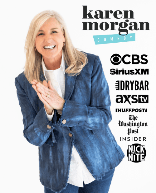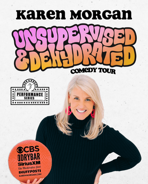 Karen Morgan was born and raised in Athens, Georgia, but now calls Maine home. A former trial attorney, she has been performing stand-up comedy in theaters and performing arts centers for two decades. She entertains audiences nationwide with her relatable observations of family and everyday life. Karen has 2 (soon to be 3) Dry Bar Comedy Specials and has been featured on The Talk on CBS, and in The Washington Post, HuffPost and The Insider. Her latest album, “Shiny Happy People Laughing,” was recorded in Athens, Georgia, and named with kind permission from her hometown band, REM. It can be heard exclusively on Sirius XM Radio. She loves to travel for comedy shows, especially if there is a Waffle House along the way.