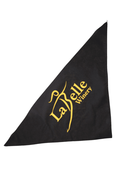 - Classic black bandana with yellow LaBelle Winery logo