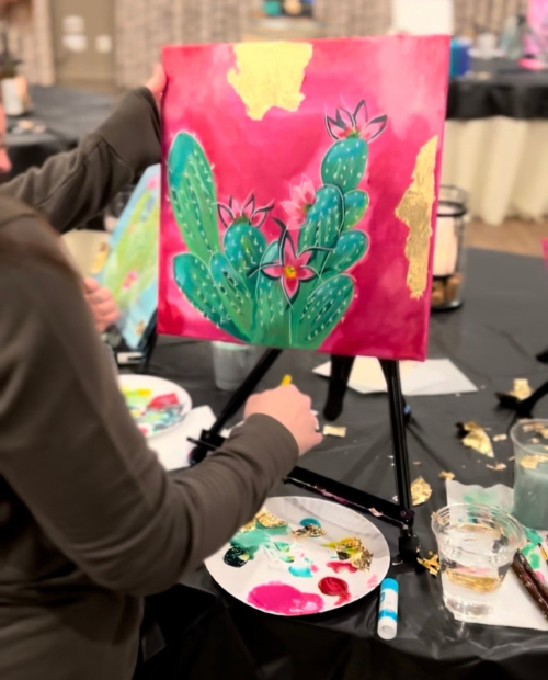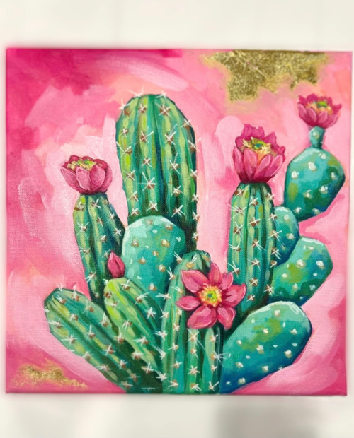 During this Paint & Sip Workshop taught by an experienced instructor from Heart Studio, you will be provided with all of the supplies needed to paint your very own blooming cactus design on canvas. The instructor will guide you through the process, and provide examples to follow, expert advice, and instructions. After the workshop, you will get to take your beautiful blooming cactus painting home with you!