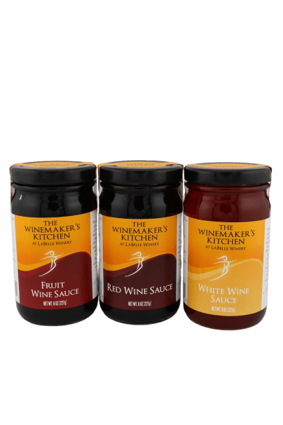 Our Winemaker’s Kitchen Wine Sauces Bundle features three rich, versatile sauces made with LaBelle Winery’s award-winning wines. This bundle includes the Fruit Wine Sauce, White Wine Sauce, and Red Wine Sauce — each crafted to enhance both sweet and savory dishes. Perfect for glazing meats, drizzling over desserts, or adding depth to your favorite recipes!
